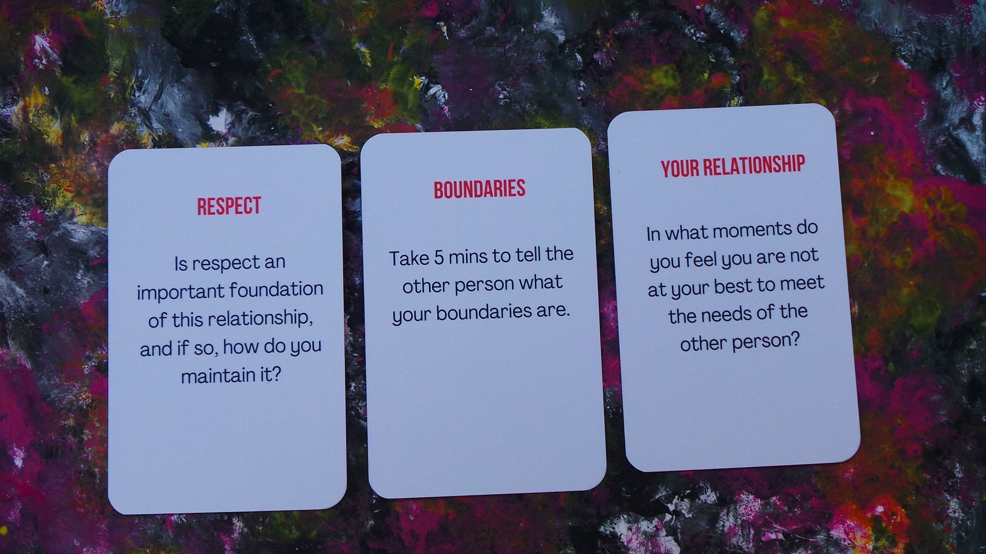 Relationships Cards focus on improving existing relationships through honest communication, vulnerability, and support.